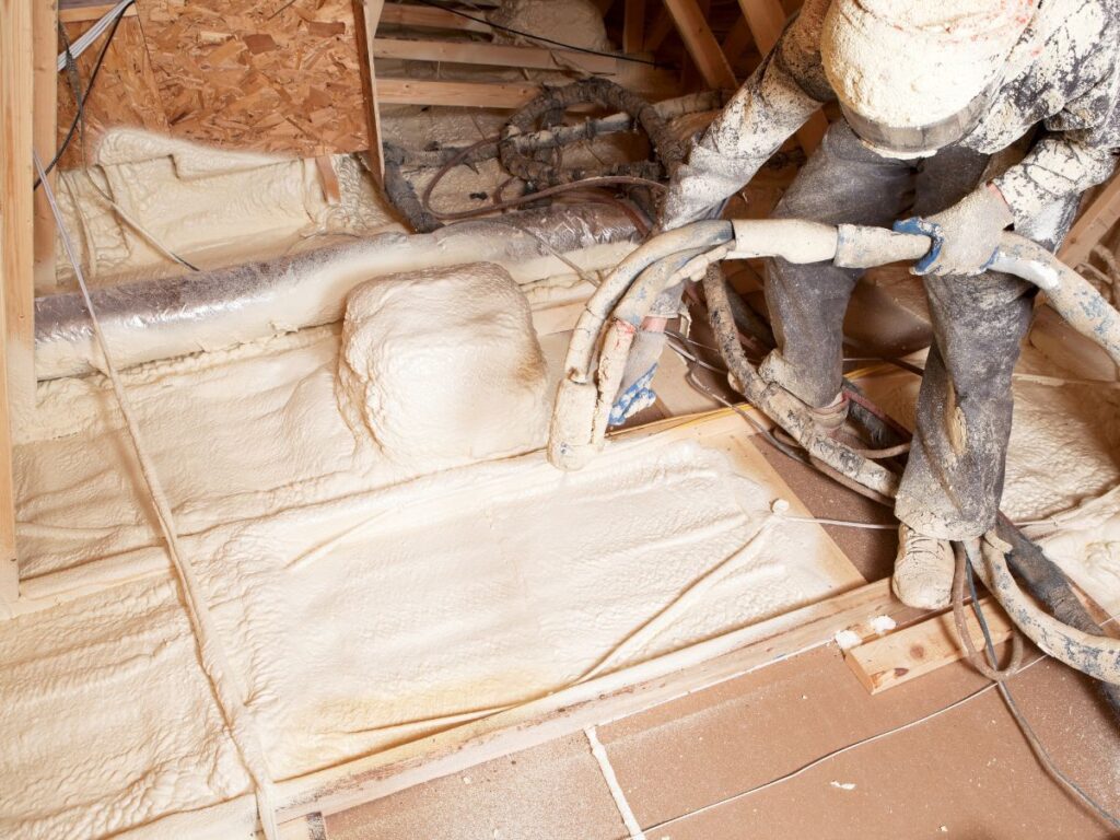 Spray foam insulation is an insulation is an air barrier material that seals walls, floors and ceiling cavities against air movement, including spaces around electrical outlets and light fixtures and where walls meet windows and doors. Spray foam insulation can provide an effective air barrier insulation to minimize air infiltration through walls and ceilings, preventing drafts, cold spots and energy loss.